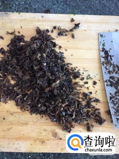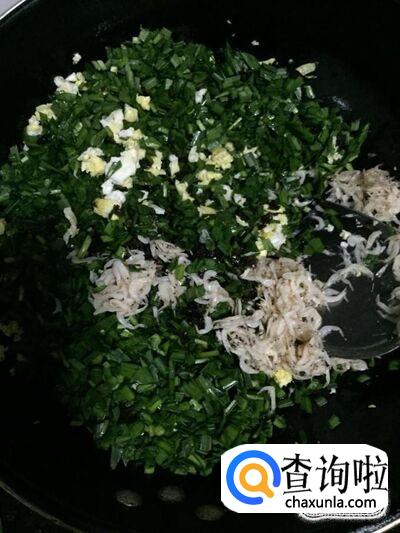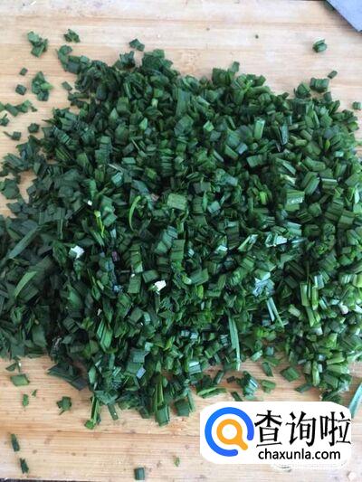 韭菜洗净控干水分,切成3毫米的小段备用,木耳提前泡发,切碎备用,虾米淘洗一遍控水备用。