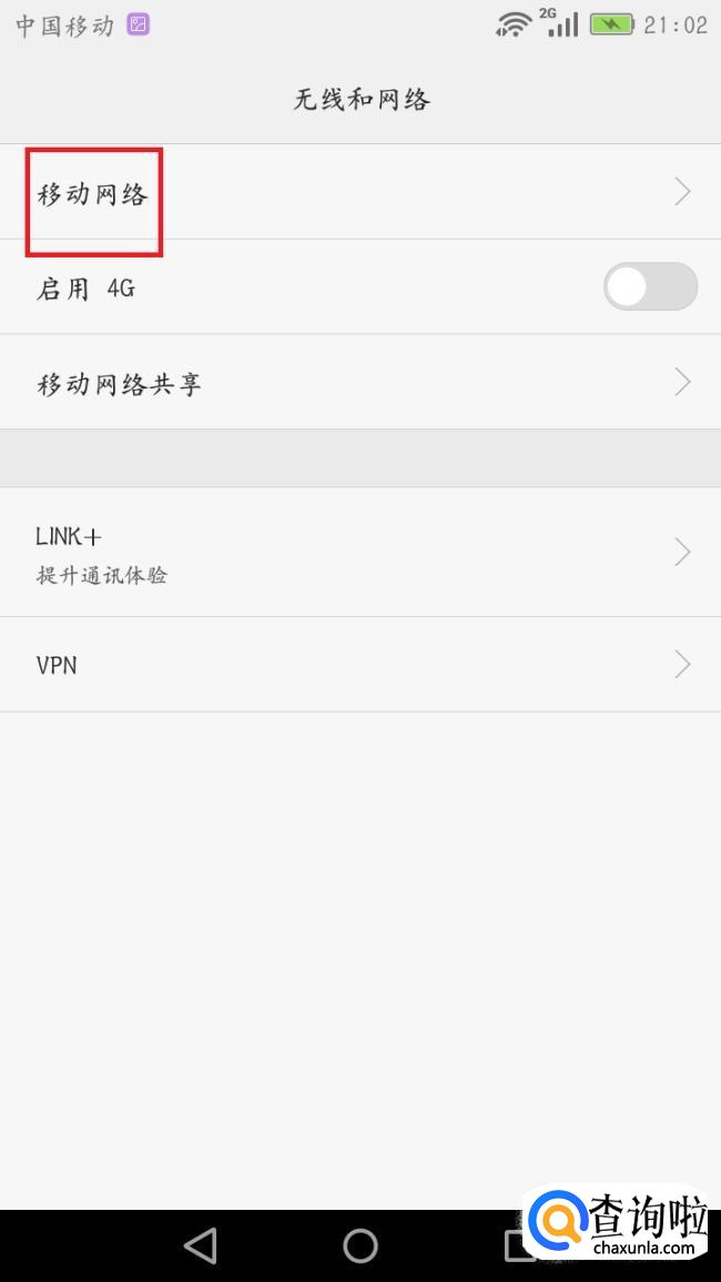 在更多里再进入移动网络。