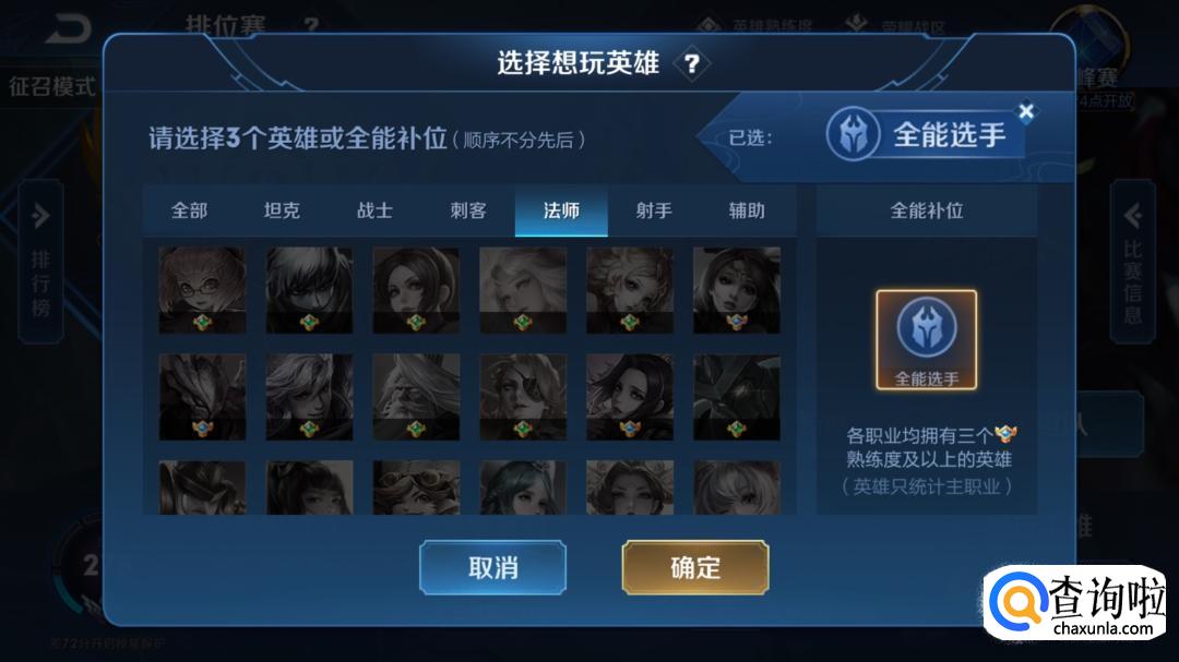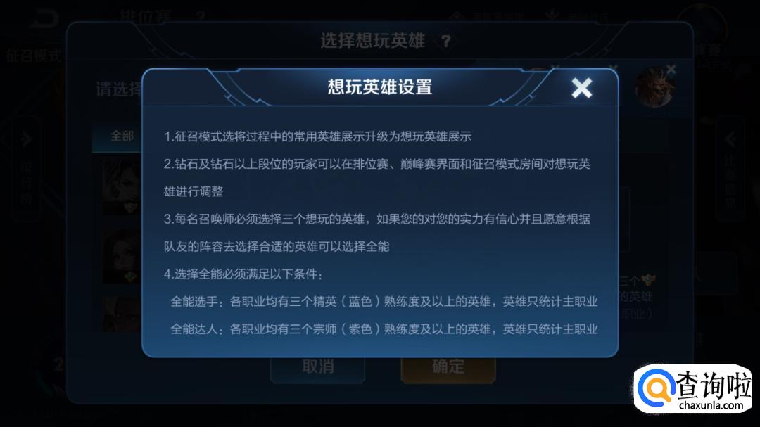 钻石及钻石以上段位的召唤师可以在排位赛界面设置自己的想玩英雄。