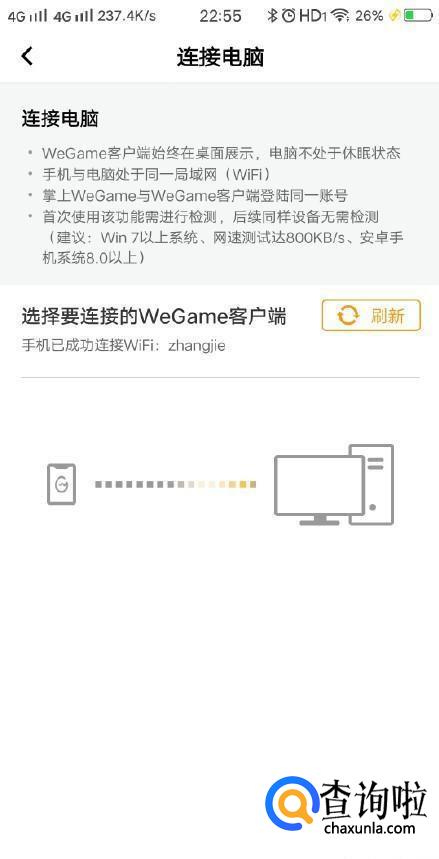 预约成功后有一个手机畅玩,点击进入后会出现一个连接电脑的按钮。(保持手机与电脑位于同一wifi)