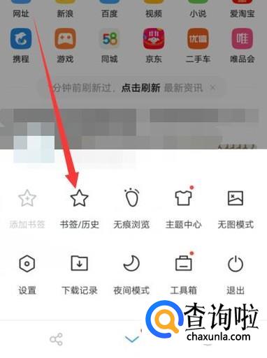 打开之后,点击“书签/历史”,进入下一页面,如图所示。