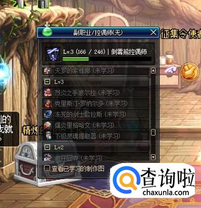 首先,需要保证操作角色的副职业为“控偶师”。