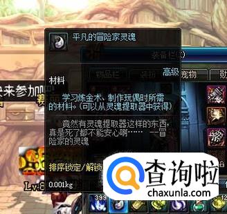 平凡的冒险家灵魂是DNF中学习炼金术、制作玩偶时所需的材料,主要是从灵魂提取器中获得,下面小编就来给大家讲解一下获取平凡的冒险家灵魂的具体操作步骤。