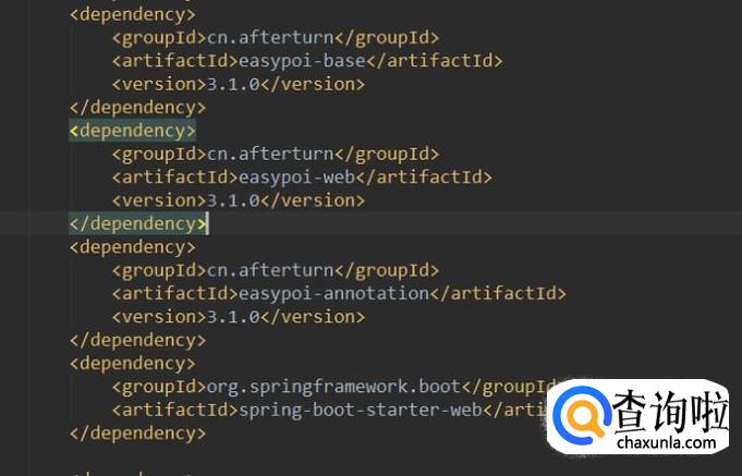 我们是使用Maven管理项目,首先我们需要添加开发EasyPoi所依赖的jar包,如下所示。