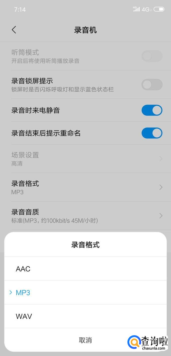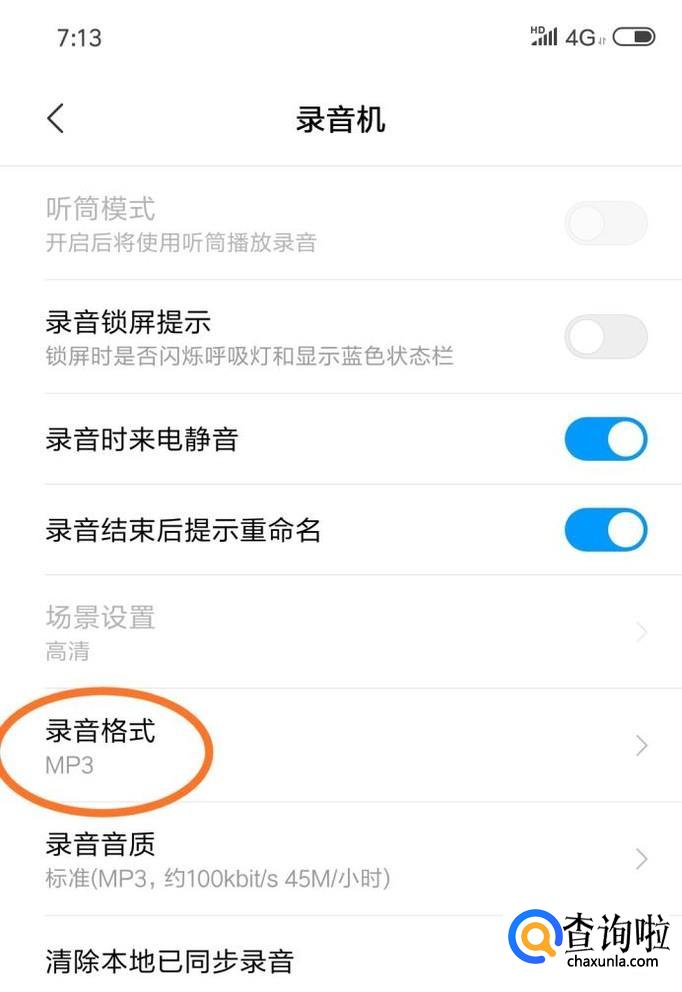 找到设置里面的录音格式选项,点击打开