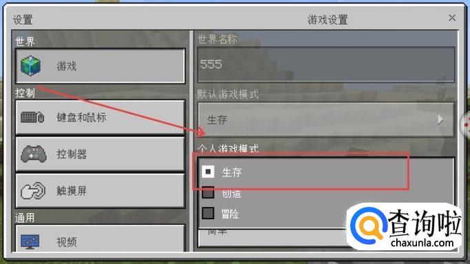 同理,点击“设置”,并将“个人游戏模式”中的模式重新改为“生存”模式。