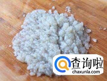 将海鲜末,泡菜末,面粉,葱姜蒜末混合,加盐,味精少许,然后再加水少许,搅拌均匀成泥状。