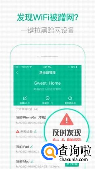 下载Wifi管家,查看自己家的Wifi密码是否被破解,有没有其他人在蹭网。