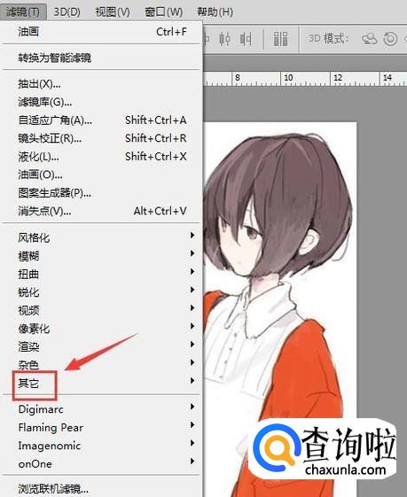 使用ps将我们的图片打开,然后在滤镜菜单哪里找到其他选项,如图所示:
