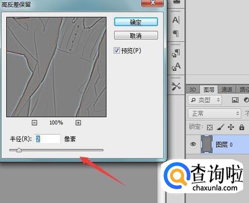点击高反差保留选项在弹出的对话框内设置参数如图所示: