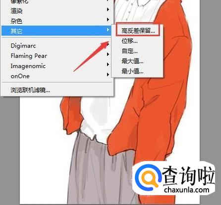 点击其他选项在其子级菜单哪里找到高反差保留选项,如图所示: