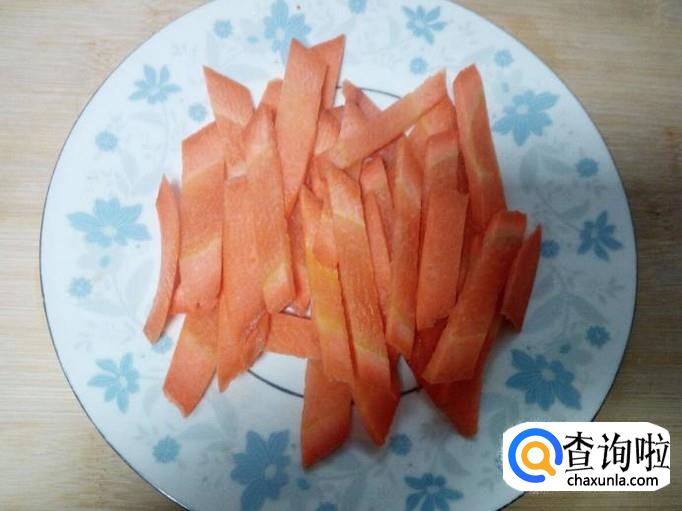 胡萝卜去皮,用水清洗干净,控干水分,切成片。