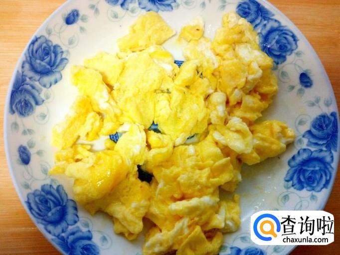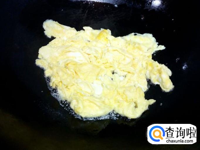 用锅把鸡蛋炒出来,炒至八分熟,盛出备用。