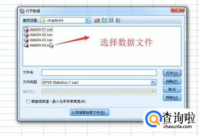 接下来在打开数据界面我们选择要进行交叉表分析的数据文件,如下图所示