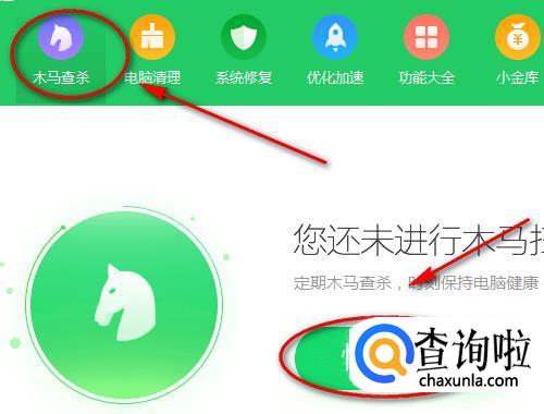 首先打开360安全卫士,然后切换到木马查杀,点击下方的快速查杀按钮,对电脑进行全面杀毒。