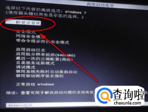 然后会弹出“高级启动选项”,点击“修复计算机”,进行电脑的修复。
