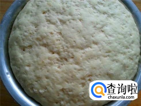 家常水煎包使用的面时候发酵好的面,酵母加上温开水和面,揉成面团之后盖上保鲜膜发酵,一般发酵两个小时就好了。