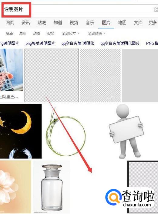 打开搜索引擎,在搜索框输入透明图片,找到一张透明照片,先保存在手机相册里。