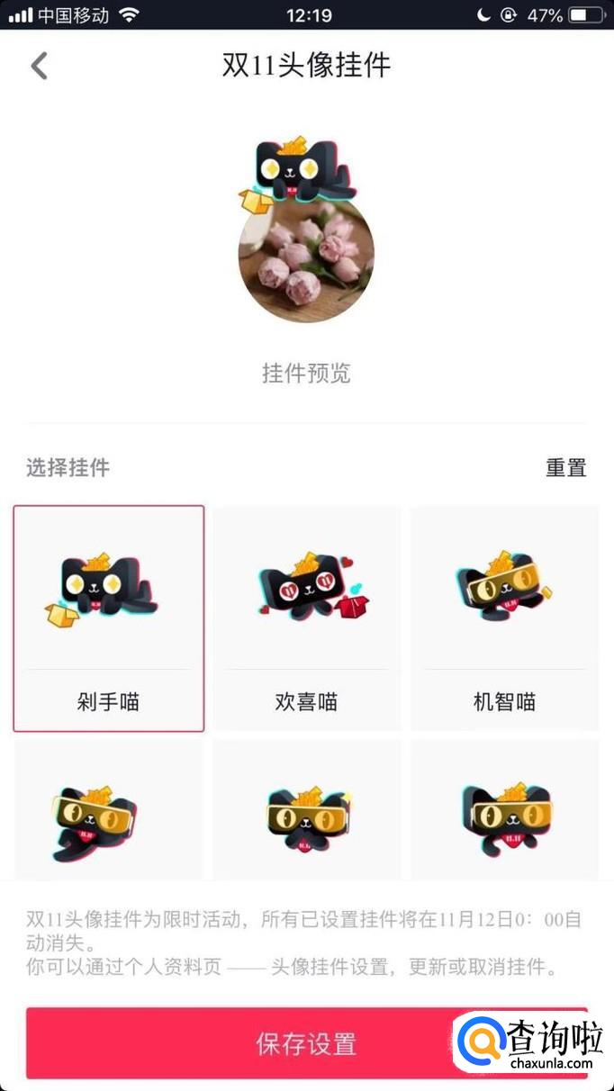 最后选择一个我们想要的挂件,并点击保存设置就可以了。