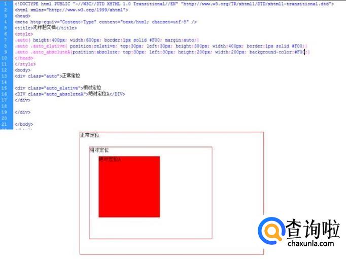 然后在正常定位的里面,利用position:relative来相对定位,relative属性值的父元素就是上图块元素,如下图。