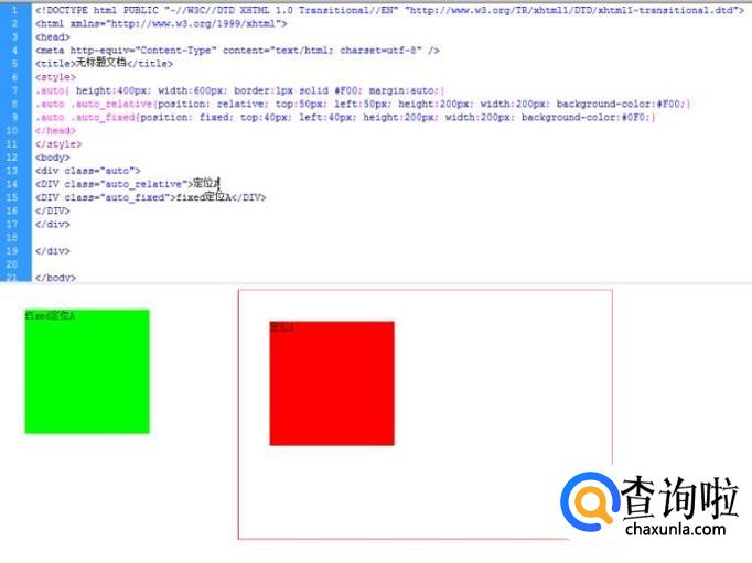 固定定位(fixed)属性值的定义为浏览器窗口进行定位。通俗一点就是父元素为body,通过top, bottom, left, right来控制位置。如下图定位在relative里面,然而并没有效果。