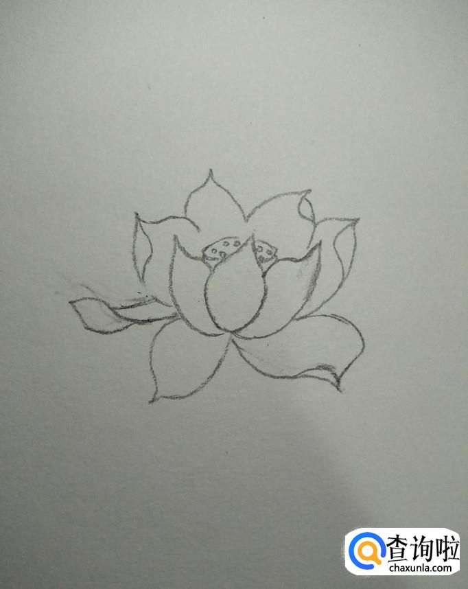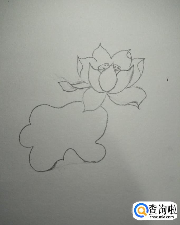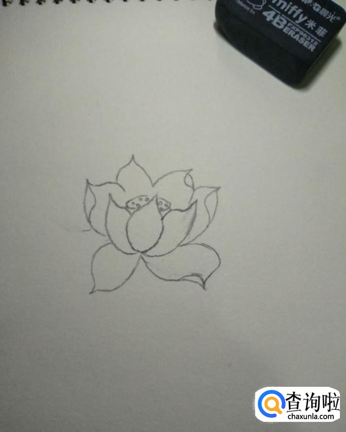 先用铅笔在素描本上画一片中央花瓣,如下图所示