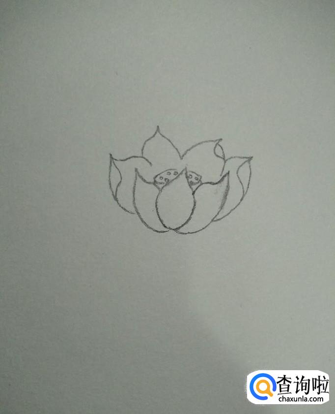 然后我们从三片花瓣的连接处起,画一个莲蓬,如下图所示。