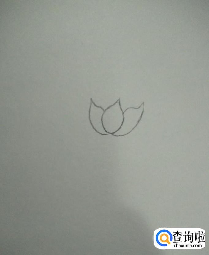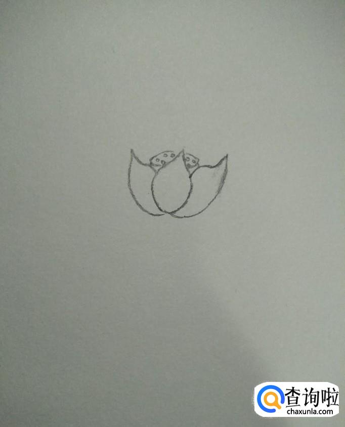 然后在其两边分别画一片花瓣,如下图所示,两片花瓣呈"对称"式。