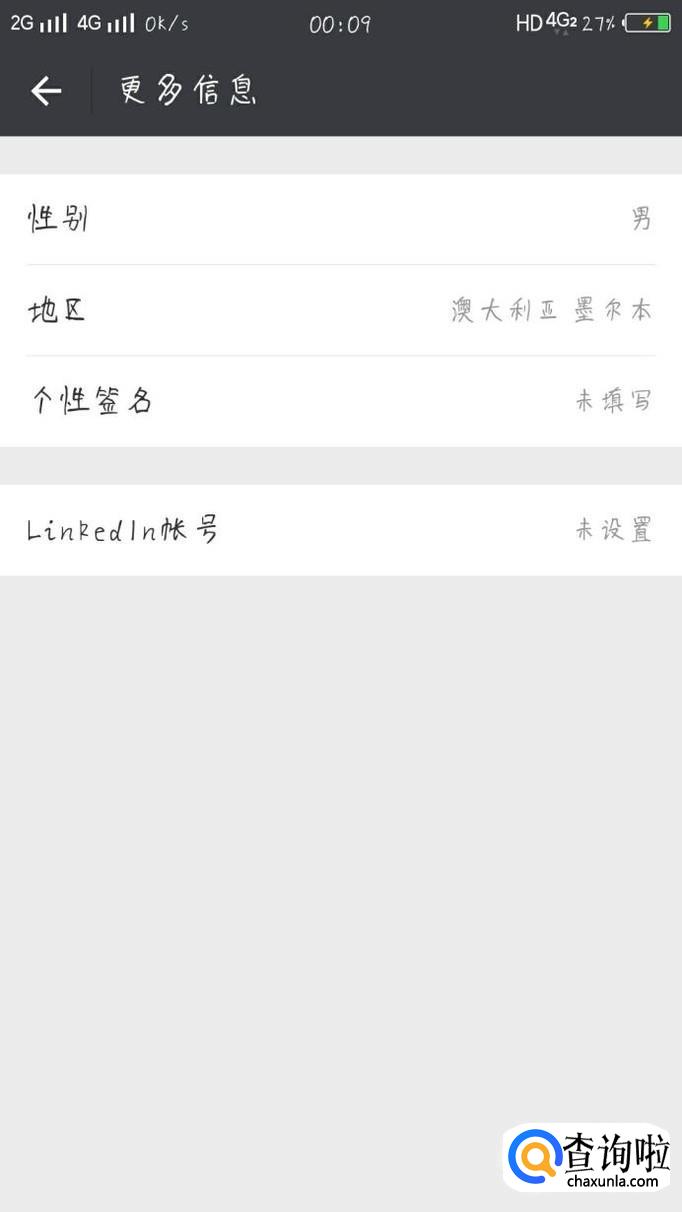 在“更多信息”页面,点击“个性签名”,如图所示。