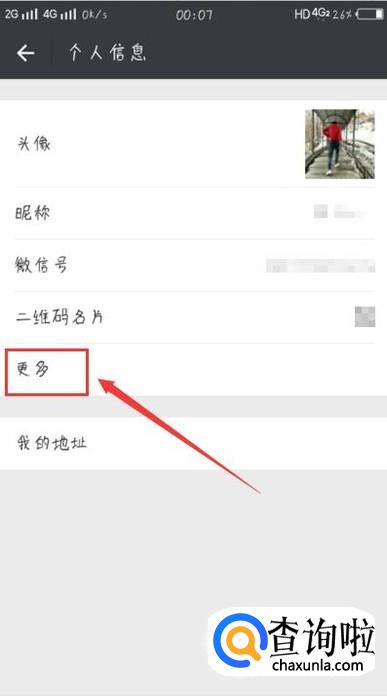 在“个人信息”页面,点击“更多”,如图所示。