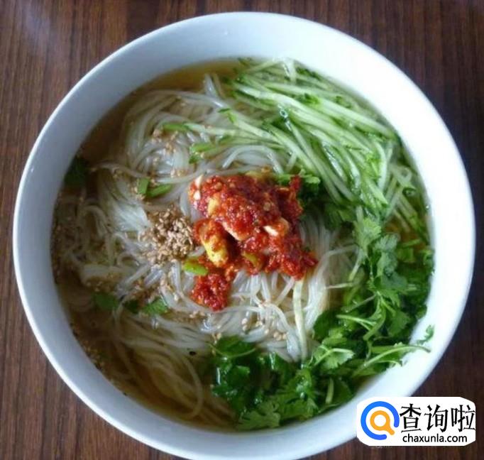 准备一些我们喜欢的蔬菜,将冷面倒入碗中和配菜混合,再淋上汤汁就可以食用了。