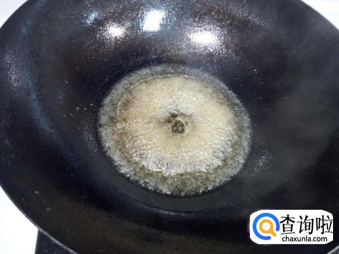盛出炸南瓜丸多余的油,锅内留少许油加油。油热后放入一匙儿白糖,一匙儿醋,少许蚝油,少许盐,兑少量水,熬成糖醋汁。