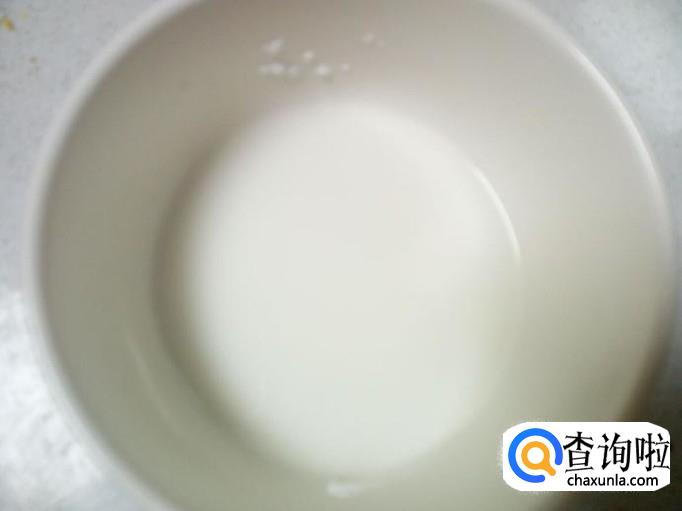 碗里放入一匙儿淀粉,兑水,勾成芡汁。
