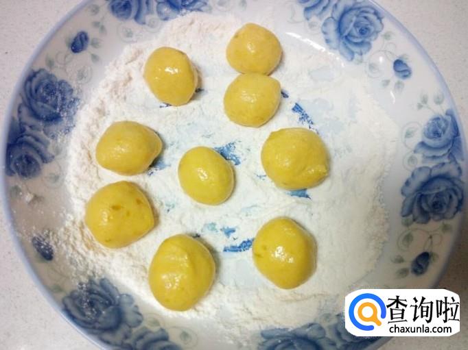 把揉成的面团,用手抟成元宵大小的南瓜丸(手上抹上油)。