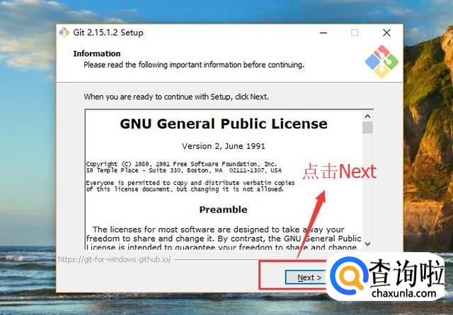 首先点击Git安装程序,默认进入安装向导界面,第一个页面没有什么需要注意的,直接点击Next按钮即可,如下图所示