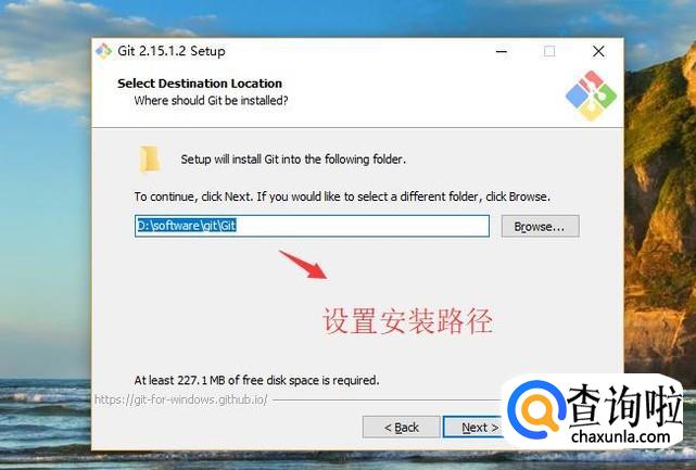 接下来会进入到安装位置选择的界面,这里要注意的是别安装在C盘即可,如下图所示