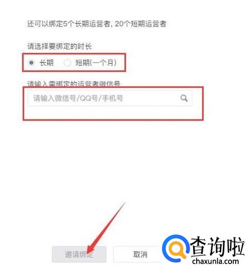 然后选择绑定的时间,输入对方微信号,即可点击“邀请绑定”,即可完成操作了。