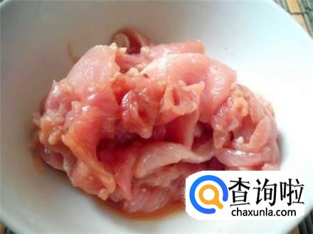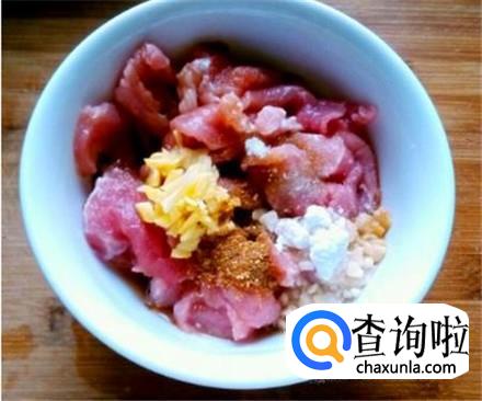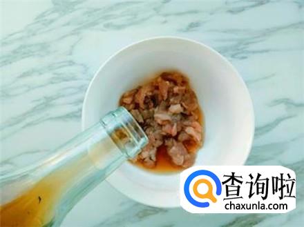 瘦肉清洗干净,切成片,或者筷子粗细的长条,亦或是肉段,加上一勺料酒抓一下。