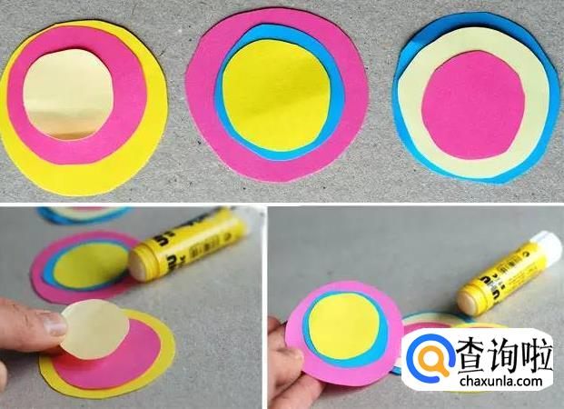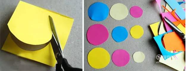 选择自己喜欢的颜色纸片,剪出大中小三种尺寸的圆片。