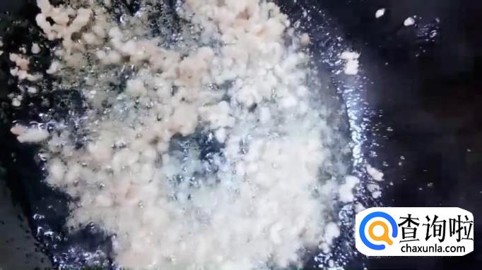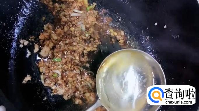在平底锅中放少许油,油热后将猪肉糜放入锅中,小火煸炒出油。