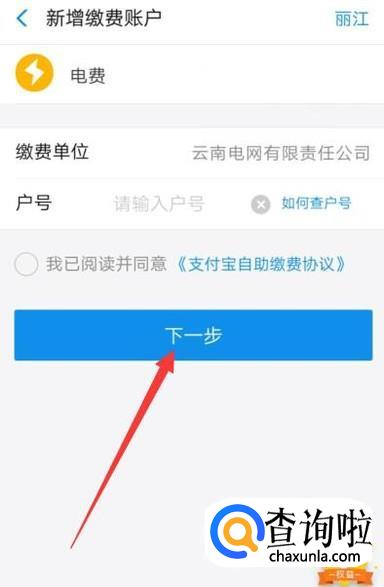 进入之后,输入户号将其绑定,点击“下一步”,如图所示。