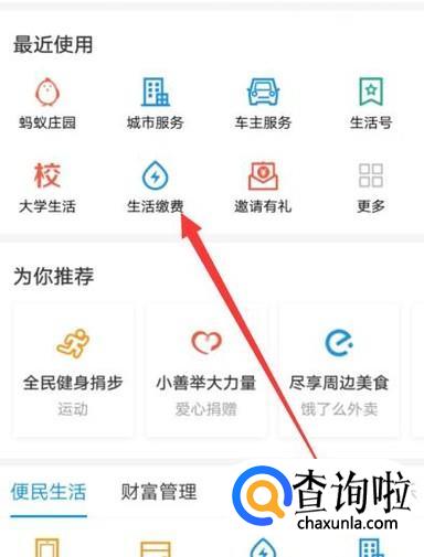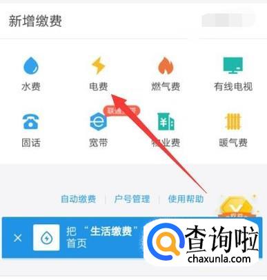 进入之后,点击“生活缴费”,进入下一页面,如图所示。