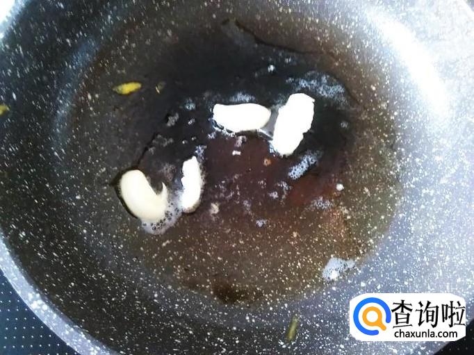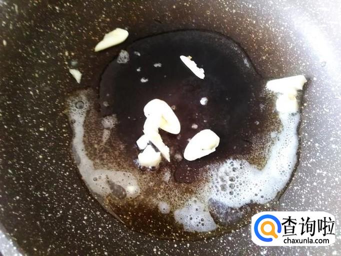 开火下油,放蒜米进去爆香。