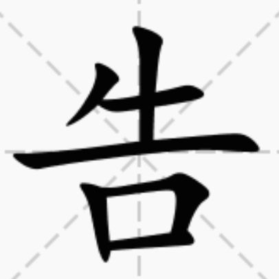 告字是会意字。上部分是牛,为祭祀用的牲畜,下部为口,表示诉说之意。整个字表示人用牛献祭,向神灵或祖先祝祷祈福的意义。上古时期,牛是最高规格的祭祀牲畜,只有在十分隆重的场合才会使用。由口中说祈祷的话,引申为告诉;由告诉引申为告示、谕告,又由告示、谕告引申为教育;由告诉引申为上告、上报;又由上报引申为告状;由告状引申为揭发;由上报引申为请求,由请求引申出休假;由揭发告状引申出定罪。