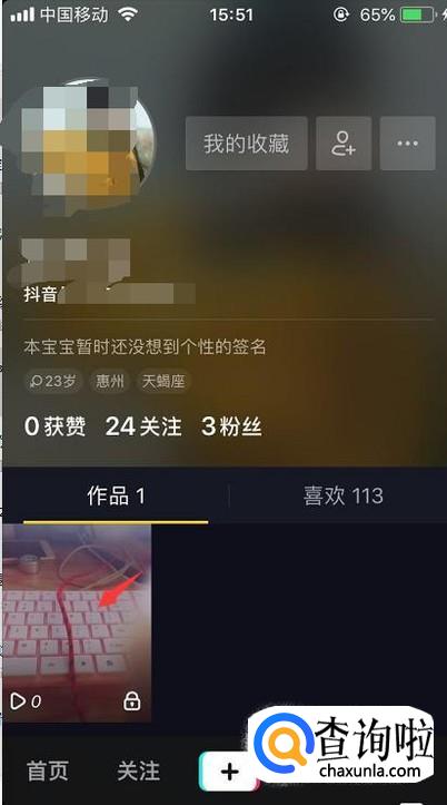首先我们先打开抖音然后在个人页面里点击一下想要保存到手机的视频。