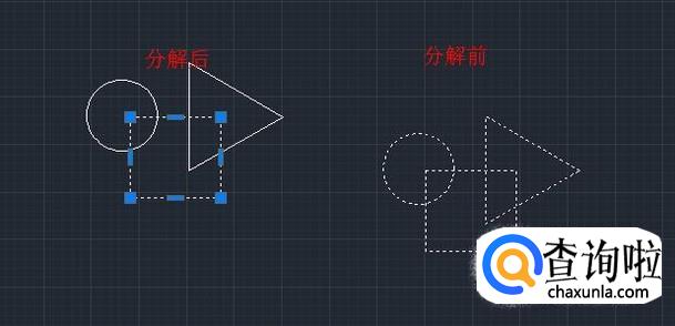 在绘图区粘贴刚才复制的图形即可(下图为分解前后的对比图)。