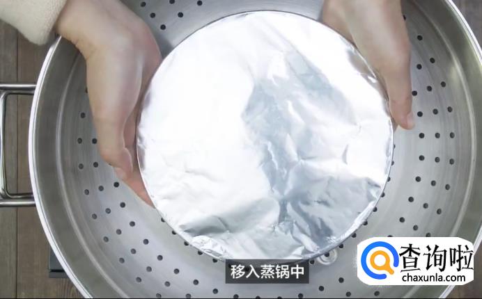 接下来,将五花肉捞出,肉皮朝下放入碗中,淋上汤汁,再盖上锡箔纸移入蒸锅中,开大火蒸半个小时左右即可出锅。