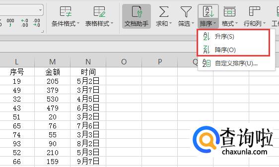 点击右方的“排序”,现在就可以选择升序或者是降序来进行排序了,如下图所示。