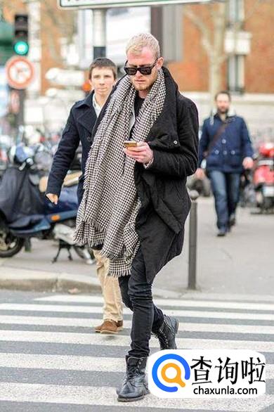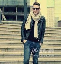 经典围法三:直接把围巾套在脖子上也是一种围法,很高的男生们采用此法,可以衬托出自己的身型。