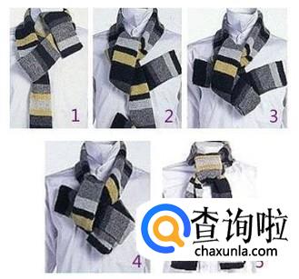 领带结法:过长的围巾有时候不太方便做事情,因此在某一些工作场合,我们可以选择领结带法,既保暖时尚,又不影响做事情。